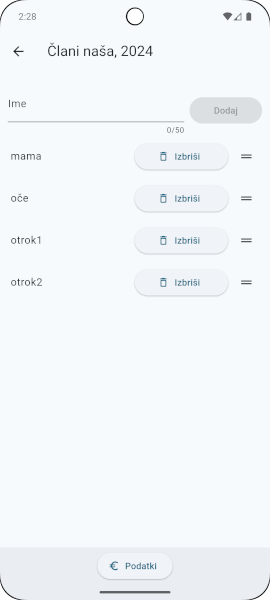 Z gumbom "Izbriši" izbrišete posameznega člana.
